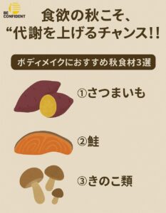Personal Gym BECONFIDENT センター南駅徒歩2分。です. 10月に入り、過ごしやすい季節になってきましたね🍂「食欲の秋」という言葉があるように、美味しい食材がたくさん登場する時期。つ […]